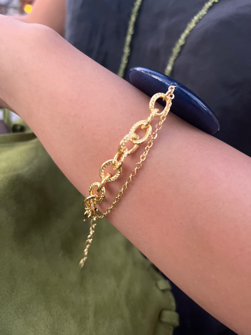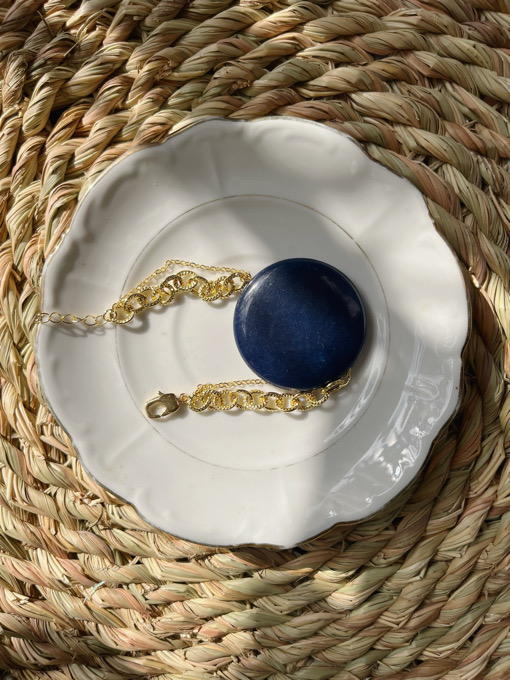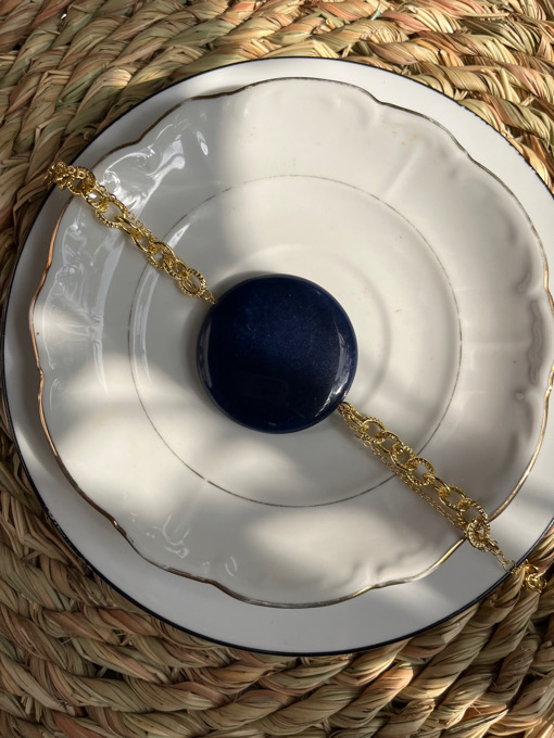Gold plated double layered bracelet with a deep royal blue agate stone