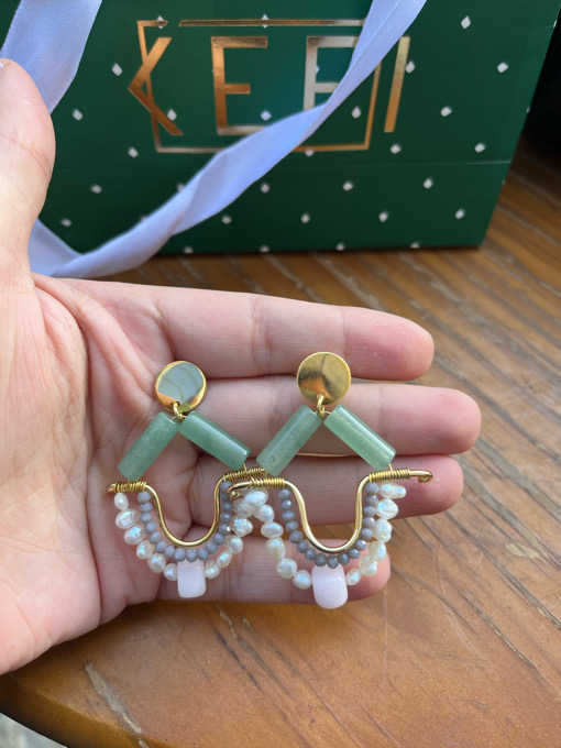 21k gold plated circular stud with our signature shape with a blend of agate stones, freshwater pearls, & crystals