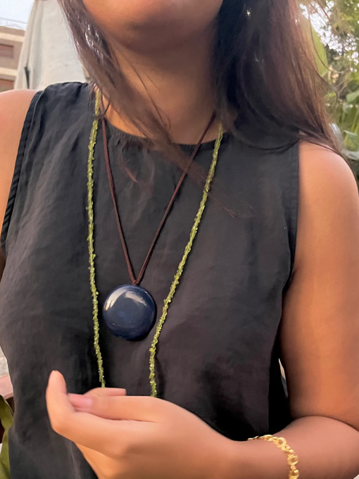 Havana necklace in deep royal blue stone with a brown thread necklaceđ«